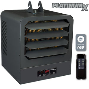 KB PlatinumX BMS series unit heaters are the most full-featured unit heaters on the market, with in-built electronic thermostat for +/- 1°F accuracy and remote control for simple operation. Comes standard with a provision for adding an optional 24V thermostat for remote temperature control, making it compatible with Nest Thermostats or Building Management System Integration.