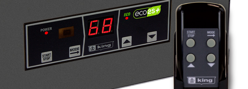 KB ECO2S+ Works Smarter Not Harder by delivering exceptional performance, energy efficiency, and user control, featuring King’s innovative built-in ECO2S+ electronic thermostat with remote control. The heaters provide energy-efficient 2-stage heating, an Eco mode that automatically uses the lowest wattage needed, integrated fan-only and timer modes, and a convenient remote for simple operation.