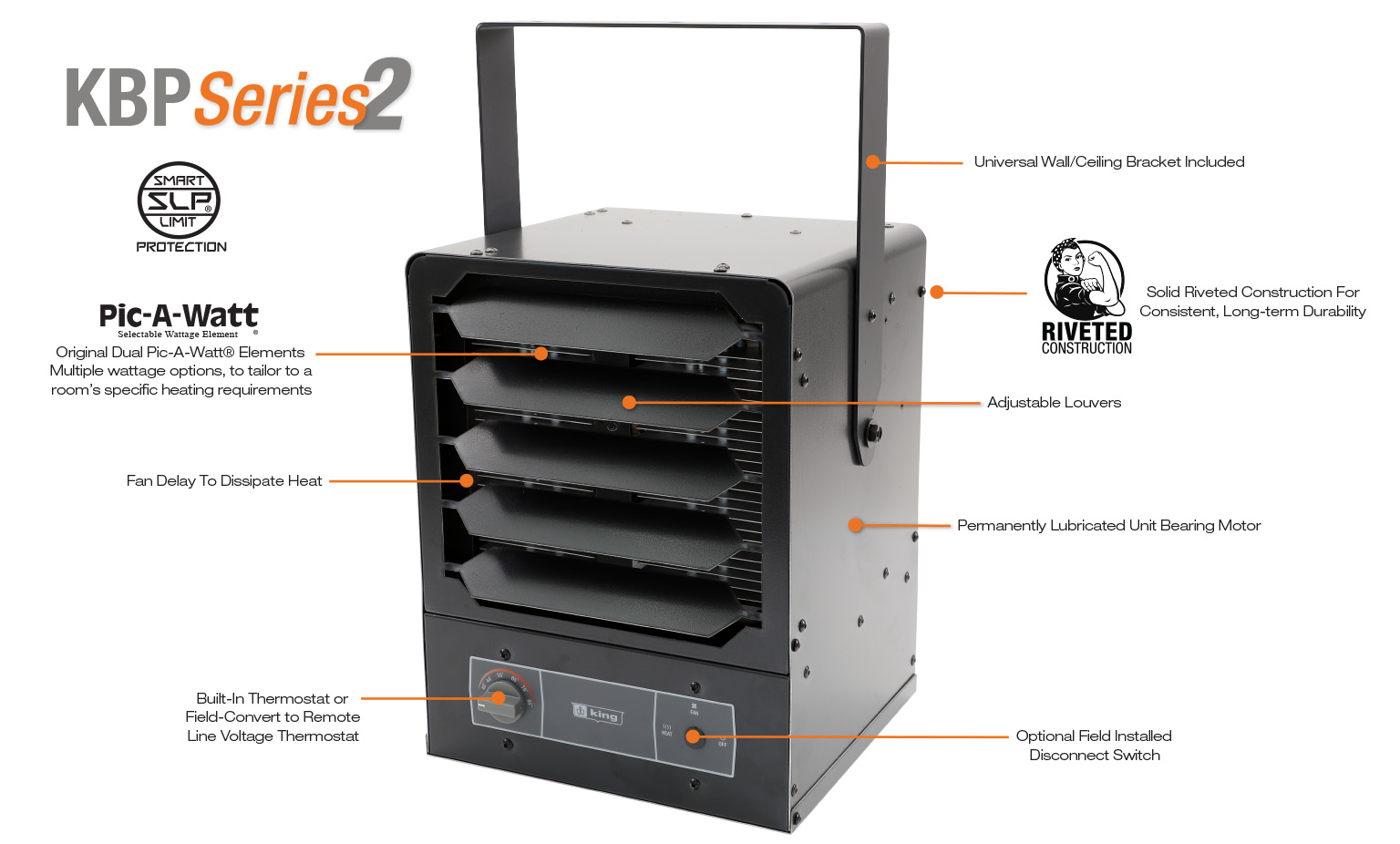 The KBP Series 2 is the new industry standard for multi-wattage unit heaters. Built on the trusted legacy of the original KBP, Series 2 delivers smarter design, improved controls, and easier installation.