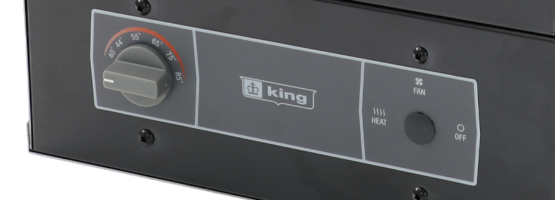 All models include a standard built-in thermostat with easy-connect terminal block to field convert to a remote line voltage thermostat.The integral fan delay continues to dissipate heat from the elements during the cool down period, maximizing the heat exchange in the room. King’s exclusive dual Pic-A-Watt steel fin elements allow customers to select from a range of wattage options, Dual Pic-A-Watt® elements tailoring the heater to an area’s specific heating requirements.
