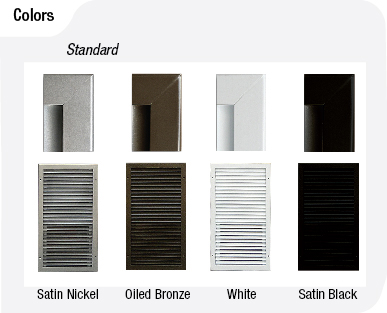 Grill: Heavy duty extruded 12 gauge aluminum provides high impact resistance to damage. Grill is attached with tamper-proof screws (hex socket/pinned). All controls are easily accessed through grill with slotted screwdriver. Standard color is satin nickel. Satin Black, Oiled Bronze or White is available.