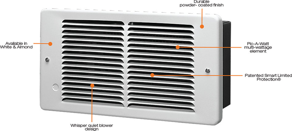 The Original Multi-Watt steel fin heater and our most popular heater for single family residences and upscale condominiums. King’s exclusive Pic-A-Watt steel fin element allows customers to select from a range of wattage options, tailoring the heater to an area’s specific heating requirements. Perfect for large living areas yet whisper quiet enough for bedrooms. The premium combination of an efficient high-mass steel element and whisper quiet squirrel cage blower, offers top of the class performance and years of trouble-free operation. PAW comes with five year warranty and 30+ year history of reliability.