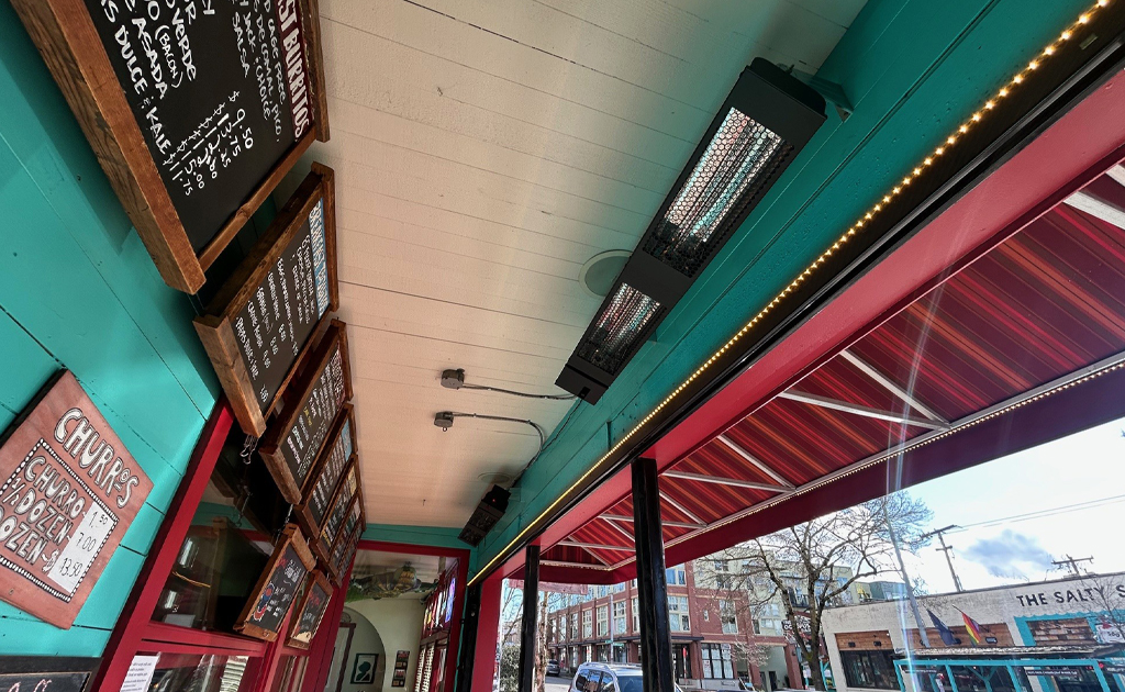 SmartWave® carbon fiber radiant heaters have the ability to transfer heat to a person or object without heating the surrounding air. Featuring CarbonIQ, carbon fiber elements, SmartWave produces high-output medium-wave infrared heat energy with a soft visible orange glow. With less intense light than short-wave infrared, SmartWave heaters are a great choice for outdoor patios or commercial applications such as restaurants, where high heat is required but less visible light is desired.