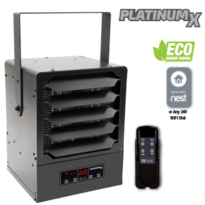 Introducing the most full featured compact unit heater ever built, improved by the Power of X. Better comfort through better engineering. KBP PlatinumX includes it all. Comes standard with a provision for adding an optional 24V thermostat for remote temperature contro or integration with a BMS system. With electronic thermostat and IR remote control.